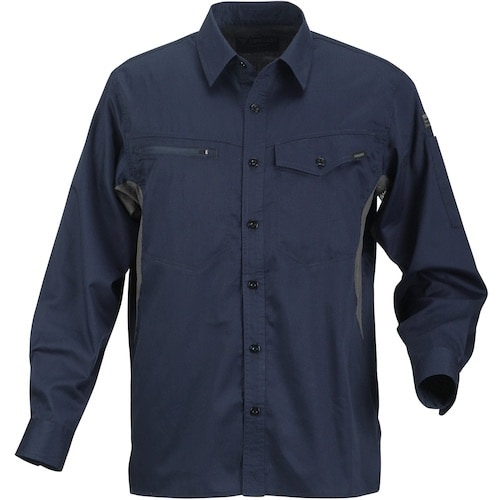 背面ベンチレーションと脇メッシュ仕様で暑さを軽減します。軽く爽快な着心地で動きやすい長袖シャツ。吸水速乾でいつもサラサラ。襟裏と脇に消臭テープを装備。作業に。 |