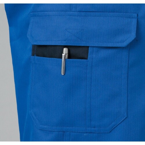 ストライプ柄のつなぎ服です。胸ポケットには通常タイプと、ペンなどを入れるのに便利なミニタイプが付いています。背面にはノーフォークを採用し、腕の引きつりを軽減します。自動車整備などに。作業全般、他。 |
