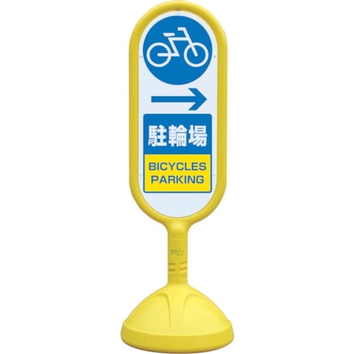 表示内容:駐輪場 右矢印 | 摘要:注水式、片面表示 | 本体色:イエロー | 本体寸法(mm):340φ×1017H | 本体:高密度ポリエチレン …