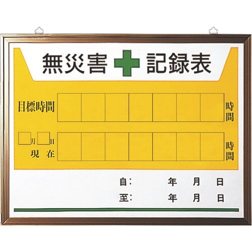 無災害継続時間を表示できるゴムマグネット貼付タイプの記録表です。無災害の確認と記録更新への意欲が、一人一人の安全意識を高めます。工事現場、工場、一般事業所等での無災害活動に最適です。 |