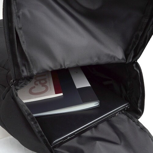 シューズを別ポケットに分けて収納可能なシューズinバッグ機能付きです。イヤホンケーブルやバッテリコードを通せるコードホールやバッテリーを収納できる内側ポケットを装備しています。 |