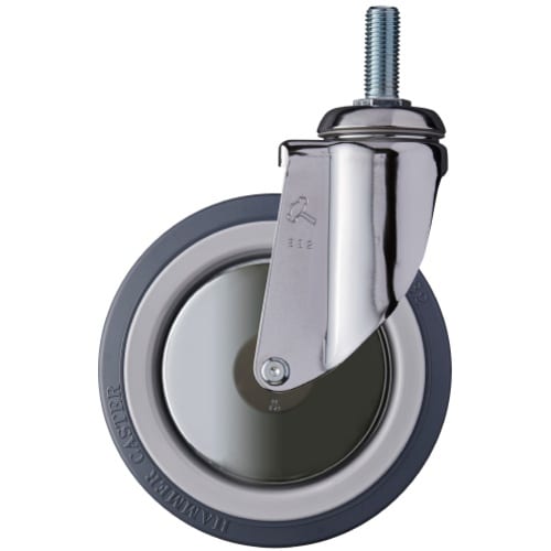 旋回部のボールレース径が大きく、幅広車輪の採用で旋回性能、走行安定性が抜群のねじ込みキャスターです。医療用ベッドや医療機器、また高級感のある外観からホテルのワゴンなどに。