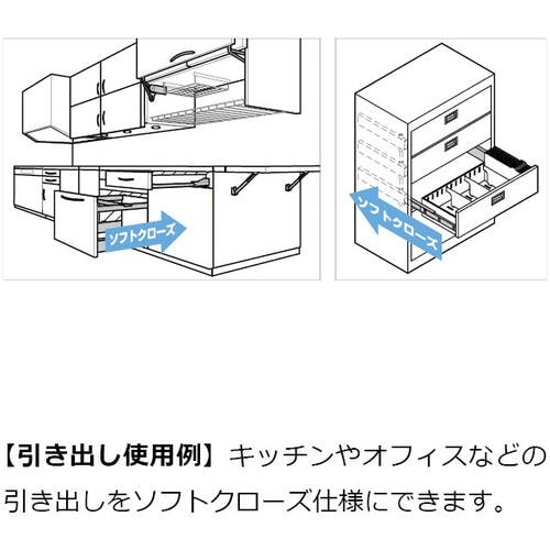後付けできる、引き出しや引戸をゆっくりと閉められるダンパーです。扉質量15kg、25kg、40kgタイプがあります。