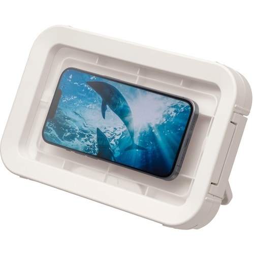 お風呂などの水周りでスマホの操作や動画視聴が出来る防水ケースです。角度調節可能な収納スタンド付、お風呂の壁に貼り付けられるマグネット付です。