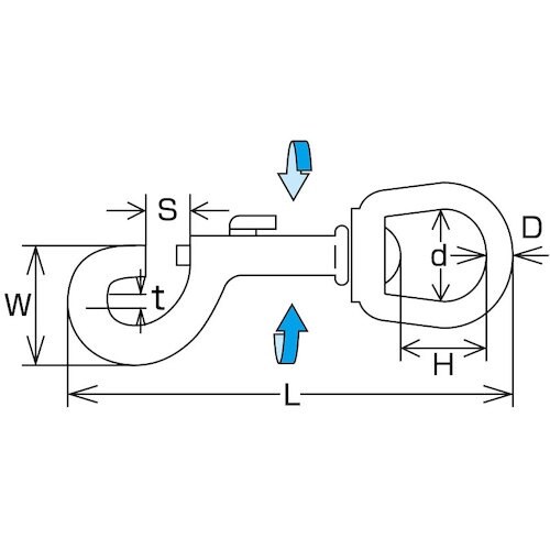 アイの部分が回転するので連結した時にからみません。ワンタッチで開くので手軽にジョイントできます。ペットの係留用チェーンによく使用されています。