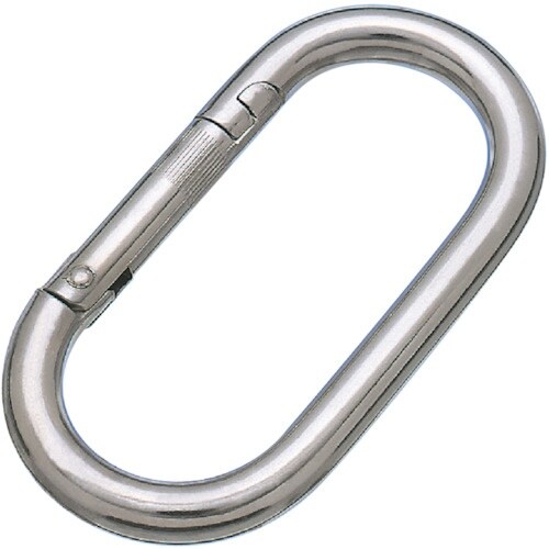 スプリングフックです。チェーン・ワイヤ・ロープ等の連結金具として、また端末の金具のジョイントに。 |