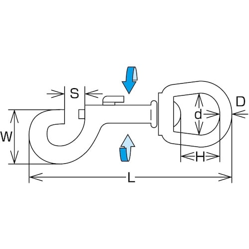 アイの部分が回転するので連結した時にからみません。ワンタッチで開くので手軽にジョイントできます。ペットの係留用チェーンによく使用されています。 |