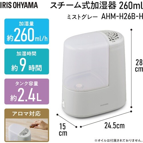 どんな場所にも置けるスリムデザインで、デスクやリビングテーブルで使用できるスチーム式加湿器です。インテリアに馴染みやすいカラーラインナップで、お好みに合わせて、3カラーからお選びいただけます。 |