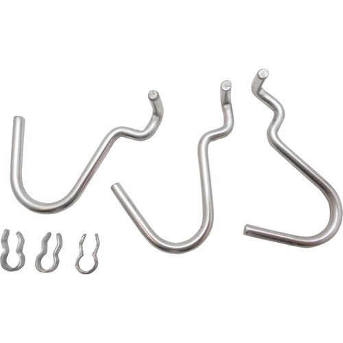 ステンレス製でサビを防ぎます。穴あきボードに取り付けることができるT型の専用フックです。 |