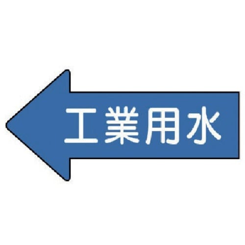 表示内容:工業用水 | 縦(mm):26 | 横(mm):55 | 厚さ(mm):0.12 | 摘要:粘着シール | 左方向矢印色:青(マンセル値2.…