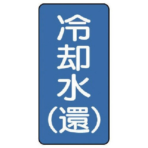 表示内容:冷却水(還) | 縦(mm):120 | 横(mm):60 | 厚さ(mm):0.12 | 摘要:粘着シール | 地色:青(マンセル値2.5…