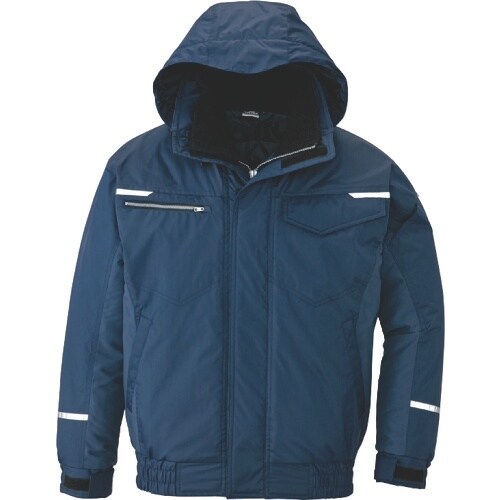 制電基準JIS T8118適合品です。防風機能付きで保温効果があります。撥水機能付きです。360度反射材付きで安全性にも配慮しています。屋外作業・倉庫業などに。
