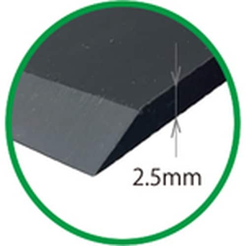 厚刃2.5mmで、従来刃厚1.2mmから大幅アップしました。強固なタイル剥し作業や軽弱なハツリ作業が可能です。屋上等の防水シートの張替え作業の作業効率をアップできます。 |