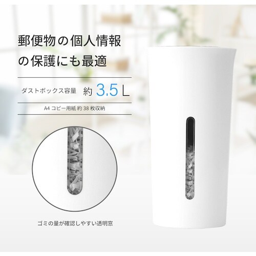 インテリアに馴染むスタイリッシュな卓上シュレッダーです。郵便物や大切な書類、ネットショッピングから出る送り状など個人情報を細断します。 |