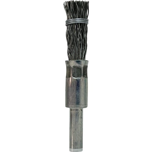 研削力があり折損率が低く、耐久性に優れています。ブラシを結束し、先端が確実にワークを捉えます。バリ取り、錆取り、溶接のビート除去などに適しています。