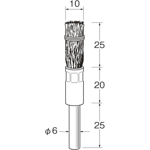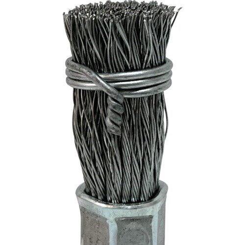 φ0.3mmの硬鋼線を亜鉛メッキした毛材を使用(バリ取り、錆取り、溶接のビート除去用)
