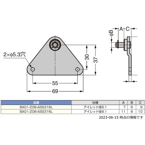 その他仕様:アイレット用 | 材質・仕上げ:ステンレス鋼 | 単位:1個