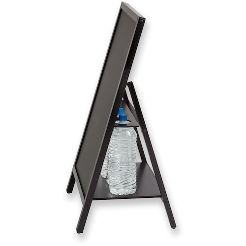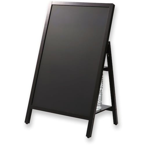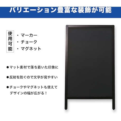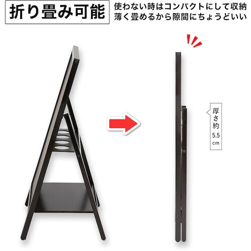 2Lのペットボトルが重しになる、転倒防止機能付きのブラックボードスタンドです。使わないときは折り畳めるので、コンパクトに収納できます。チョークとマーカー、マグネットが使えます。店舗の看板や案内板に。 |