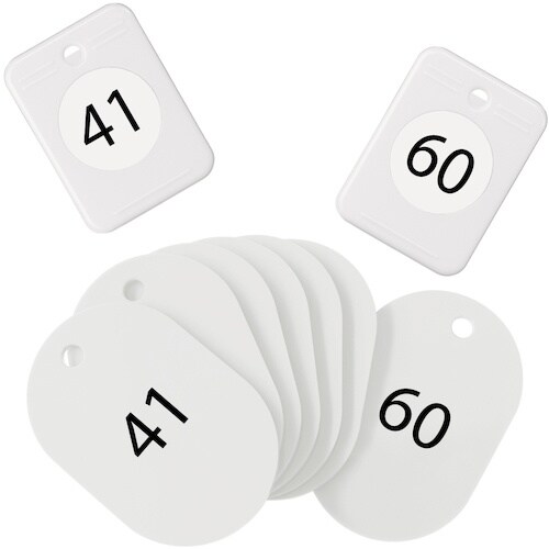 表示内容:41〜60番 | 色:白 | その他仕様:41〜60番 各1組 | 番号札穴径:φ5mm | クリップ穴径:φ4mm | 番号札サイズ(mm…