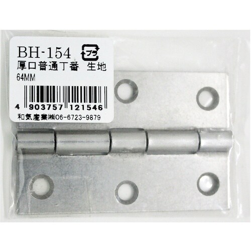 和気産業 WAKI 厚口普通丁番 生地 BH−154 64MM A016-9133