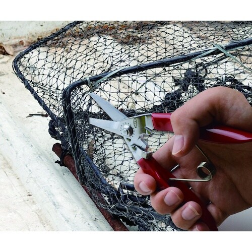 自社特殊加工によるギザ刃で対象物を逃がさず切断。特殊目切のステンレス剣先万能鋏。水産関係に最適です。 |