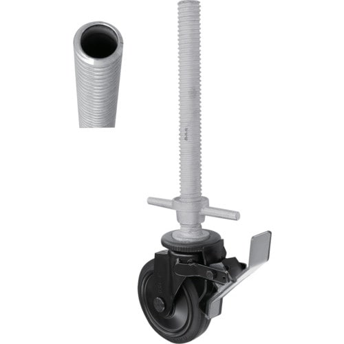 シシク ジャッキ式キャスタ 中空型キャスタ・ブラックライン ゴム車輪付 ペダルストッパー 車輪径150mm