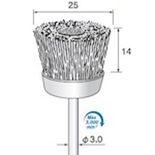 アルゴファイル ステンレスブラシカップ型 Φ25X14 Φ3.0軸       A017-0131