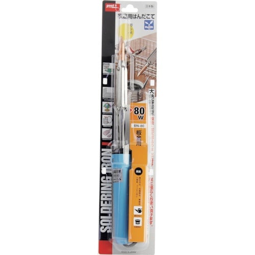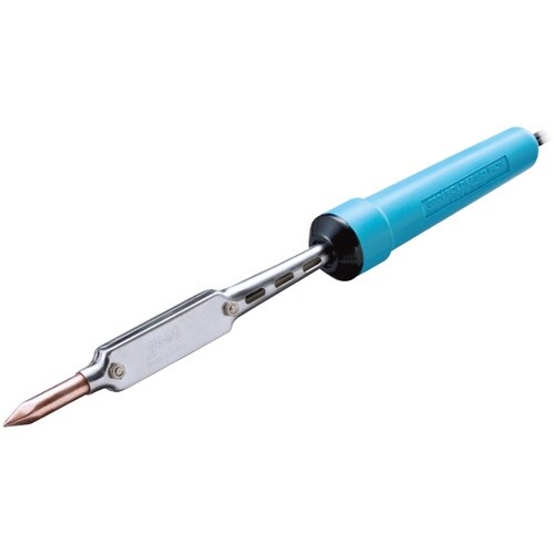 平型ヒーターで、こて先は大きく設計してありますので、充分な蓄熱があり接合面の小さいものから大きいものまで幅広く楽にはんだ付けができます。板金から電気部品のはんだ付けまで対応します。 |