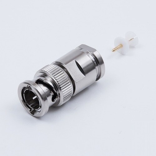 BNC75Ωコネクタのストレートプラグです。3C−2Vケーブルに適合するBNC75Ω型ストレートプラグです。ワンタッチ締付タイプとなっており、圧着工具や半田付けは不要となります。 |