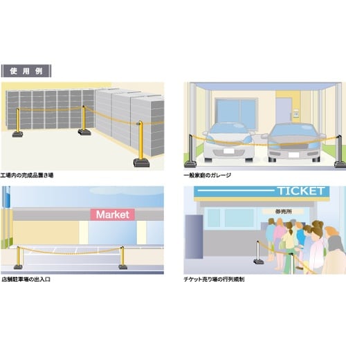 8.5mの反射板付プラチェーンが本体ポールに内蔵しています。不使用時にプラチェーンをポールに収納できます。工場内や作業場所などでの区画整理に。 |