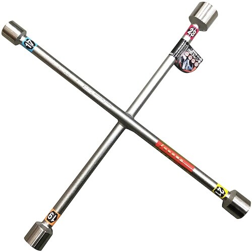最もスタンダードなタイプのクロスレンチです。クロス形状なので力を入れやすく、1本で4サイズに対応しています。締付け強度に優れ、さらにスピーディな作業も可能です。自動車やバイク等のタイヤ交換に。 |
