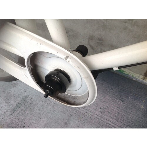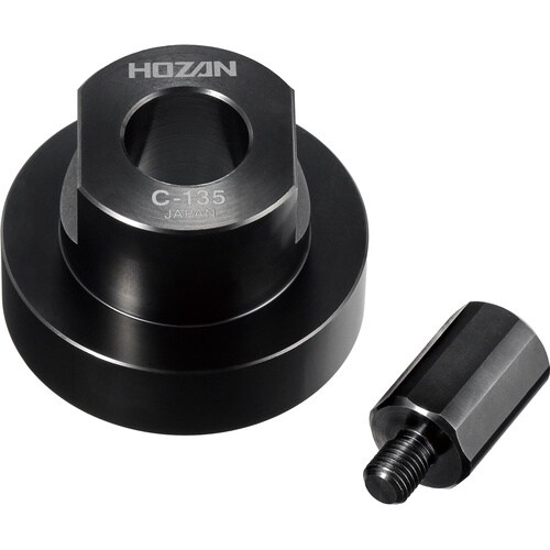 チェーンケース固定用ロックリング着脱工具。BBシャフトの先端に付属のガイドを取り付けることで安定した作業を可能にします。 |