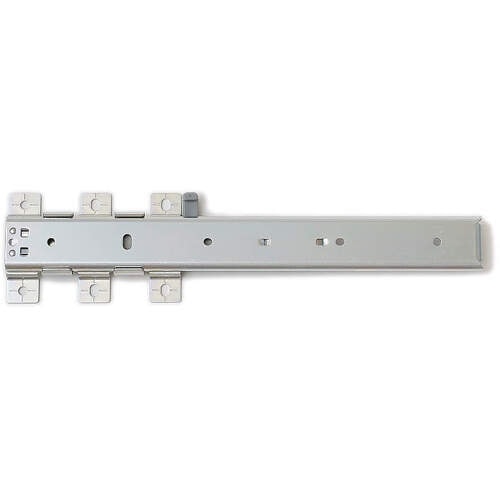 引き出しの底にレールを取り付ける底引きタイプです。引き出しても筐体側にスライドレールが見えません。レバー操作でアウターメンバーを取り外せます。本体の厚みは、わずか19.5mmと薄型です。 |