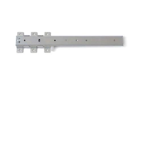 引き出しの底にレールを取り付ける底引きタイプです。引き出しても筐体側にスライドレールが見えません。レバー操作でアウターメンバーを取り外せます。本体の厚みは、わずか19.5mmと薄型です。 |