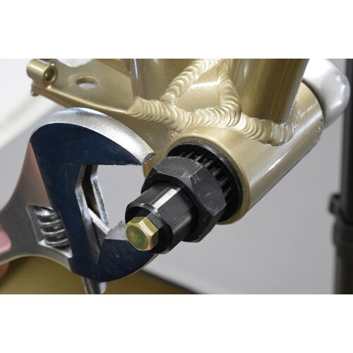 BB(カートリッジ)着脱工具。BBシャフトの先端に付属のガイドを取り付けることで安定した作業を可能にします。 |