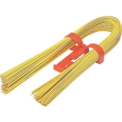 CD管、PF管を鉄筋などに結束する場合に使用します。樹脂被覆が施してあるので管を傷めません。ベルト掛けできる便利なクリップに束ねてあります。 |