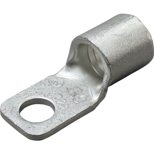 接触面(舌部)が丸く、ねじ固定用の取り付け穴がある裸圧着端子です。軟鋼のより線電線の接続に。