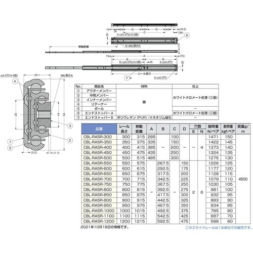 スガツネ工業 SUGATSUNE (190114140)CBL−RA5R−1100スライドレール A017-2490