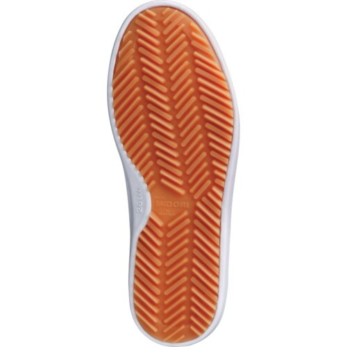 粉職場用に開発されたソールで、粉等の微粒子によってスリップを起こしやすい床でもしっかりグリップします。甲部は凹凸が無く、振りかかった粉汚れも簡単に払い落とせます。 |