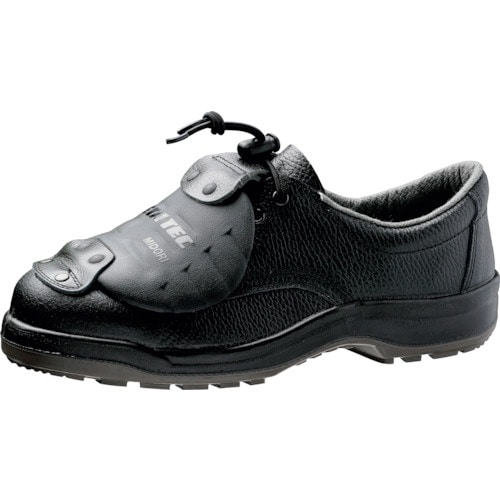 足甲を落下物から保護する甲プロテクタ付です。(JIS記号M合格)軽量で親指を圧迫することなく着用できるワイド樹脂先芯です。鋼製先芯と同じ安全性でサビなどの心配もありません。 |