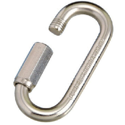 スパナ等で六角ナットを締込むことにより、人の力で容易に開かない仕組みになっています。チェーン・ワイヤ・ロープ等の連結金具として、また端末の金具のジョイントに。 |
