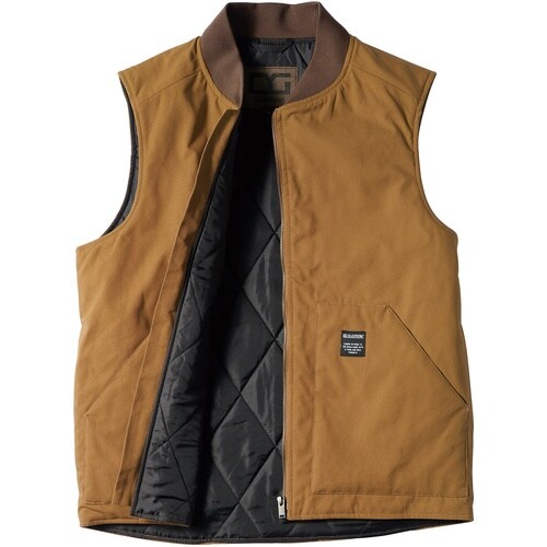 武骨な定番のアメカジ仕様でワーク、カジュアルどちらのシーンでも着用可能な綿100%キャンバス素材のワークスタイル防寒ベストです。 |