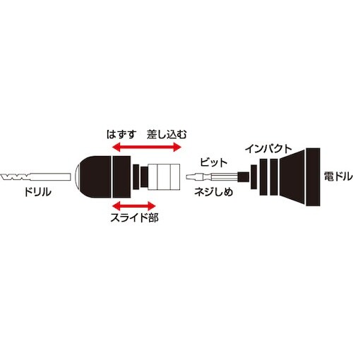 ドライバービットをインパクトドライバーに付けたままで脱着できるカプラ式キーレスドリルチャック
