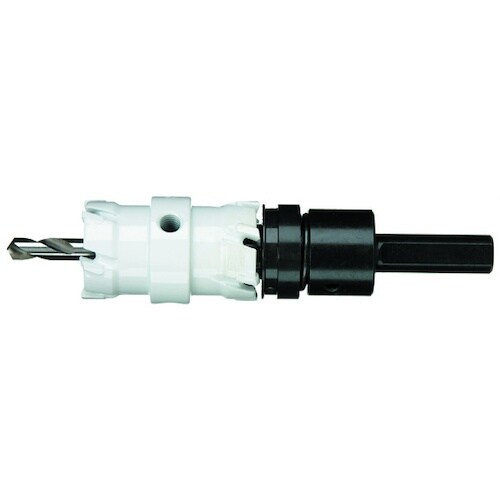替刃式ホルソーで経済的です。ワンタッチ替刃方式でくず取りも楽々です。厚さ12mmまでの鋼板、ステンレス板、鋳鉄、アルミ板等への穴あけ作業に使います。被削材:厚さ12mm迄のステンレス板、鉄板。 |