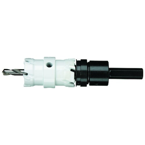 替刃式ホルソーで経済的です。ワンタッチ替刃方式でくず取りも楽々です。厚さ12mmまでの鋼板、ステンレス板、鋳鉄、アルミ板等への穴あけ作業に使います。被削材:厚さ12mm迄のステンレス板、鉄板。