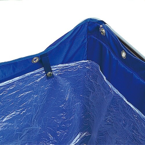 ポリ袋をセットできるボタンホック付きです。ふた付で中が見えないので、医療施設などでのタオルやシーツ・下着類の回収に最適な替え袋(ゴミ箱)です。 |