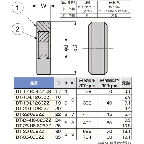 ベアリング部が鋼製のため、プラスチックベアリングより高荷重タイプです。特注品(サイズ違いなど)も製作可能です。