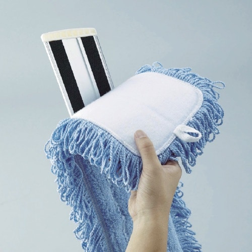 薄型アルミプレート採用で作業しやすい低重心設計です。ハンドルロック機構でプレートのふらつきを抑えられます。作業中にモップがずれにくく、外れにくい面ファスナー採用です。スレンダーラーグ専用ホルダーです。