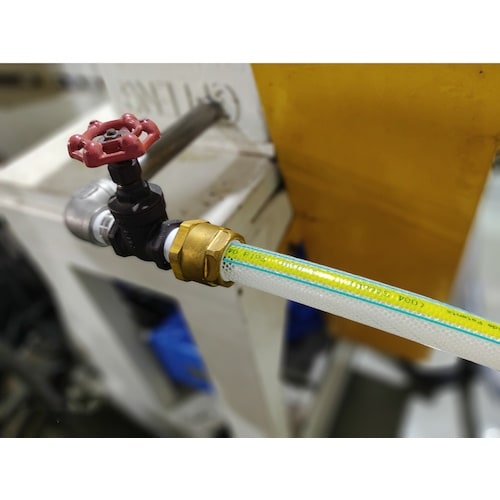 【非塩ビ耐圧ブレードホース】ホース内管にポリオレフィン系樹脂を使用し、圧送用ホースとして使用可能です。