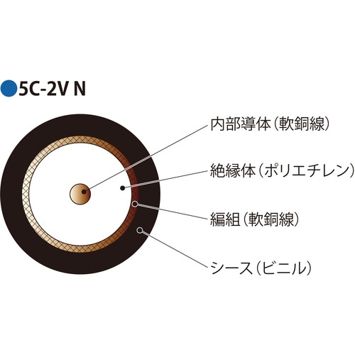 特性インピーダンス75Ωの高周波同軸ケーブルです。可とう性、柔軟性に優れ、加工や敷設工事が容易です。外部導体により遮蔽されており、雑音を受けにくく、特性が安定しています。 |